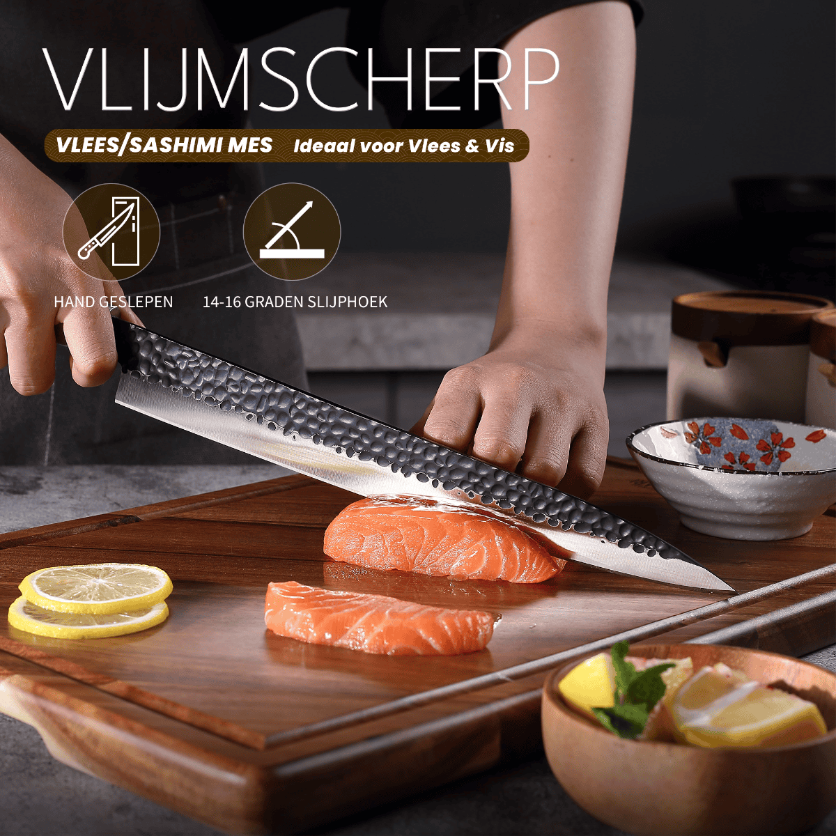 - Handgeslepen (14-16°) voor precisie en moeiteloos snijden