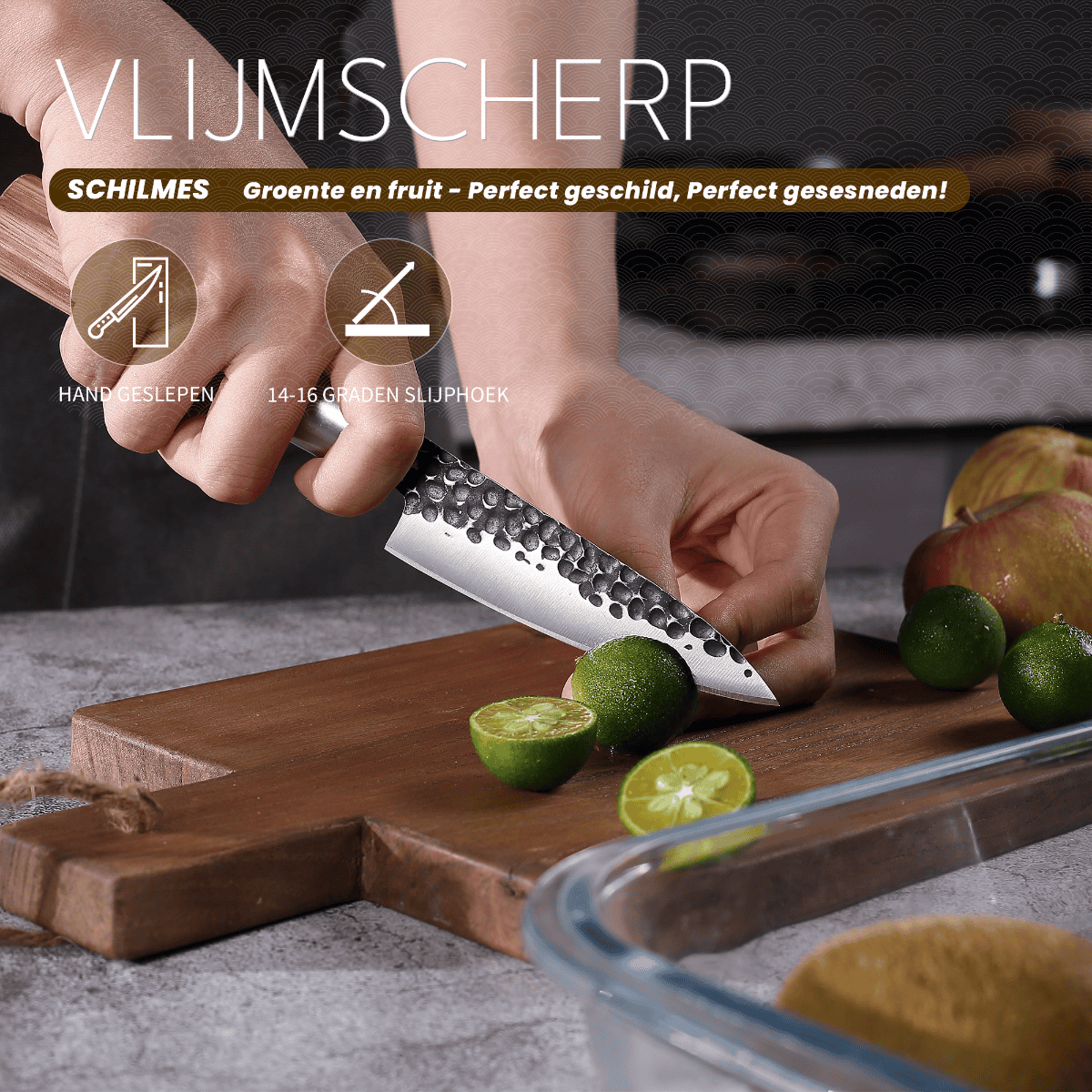 - Vlijmscherp, met de hand geslepen (14–16° per zijde)