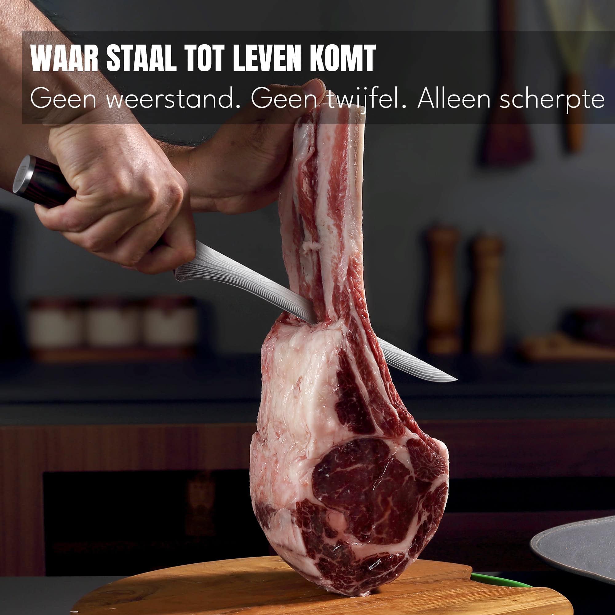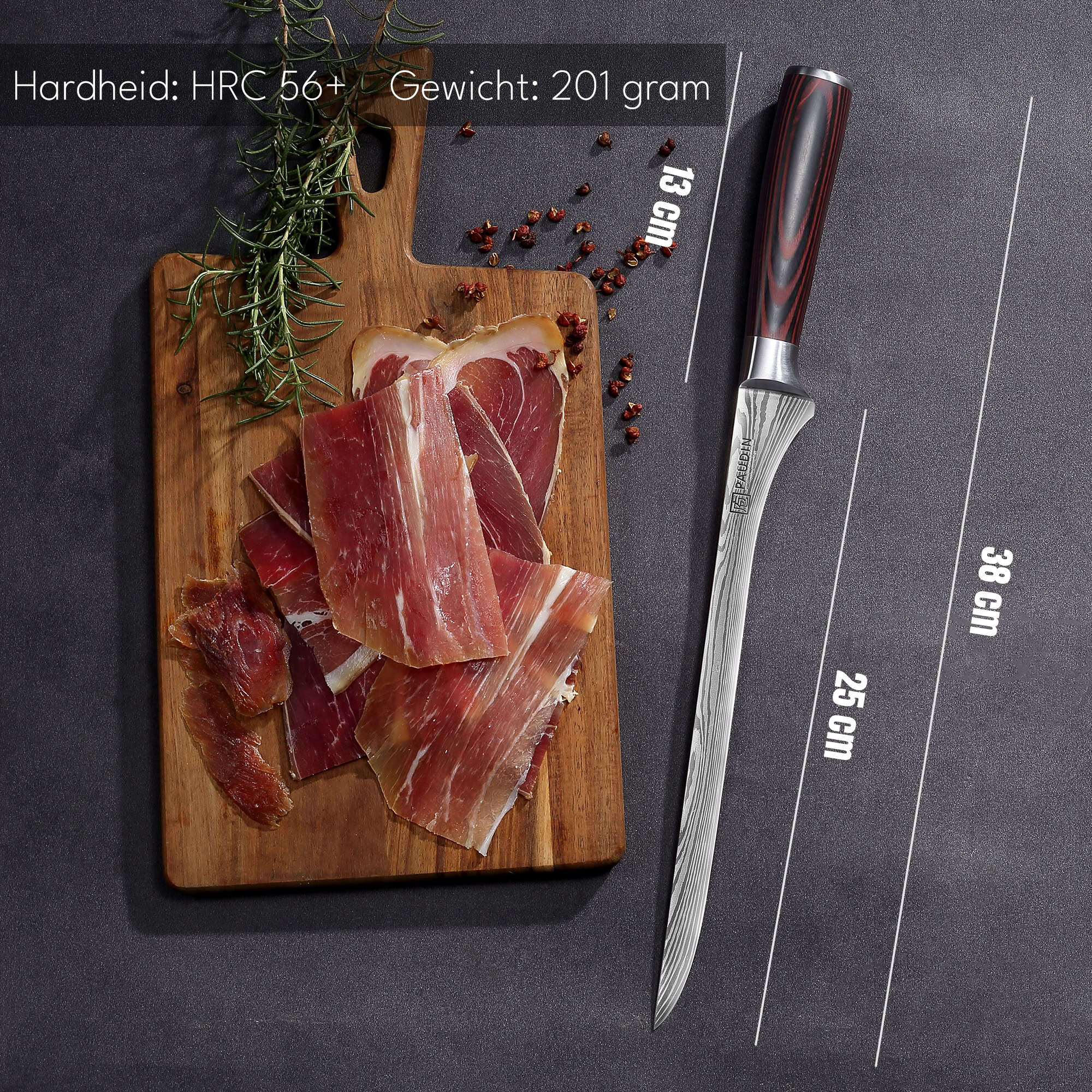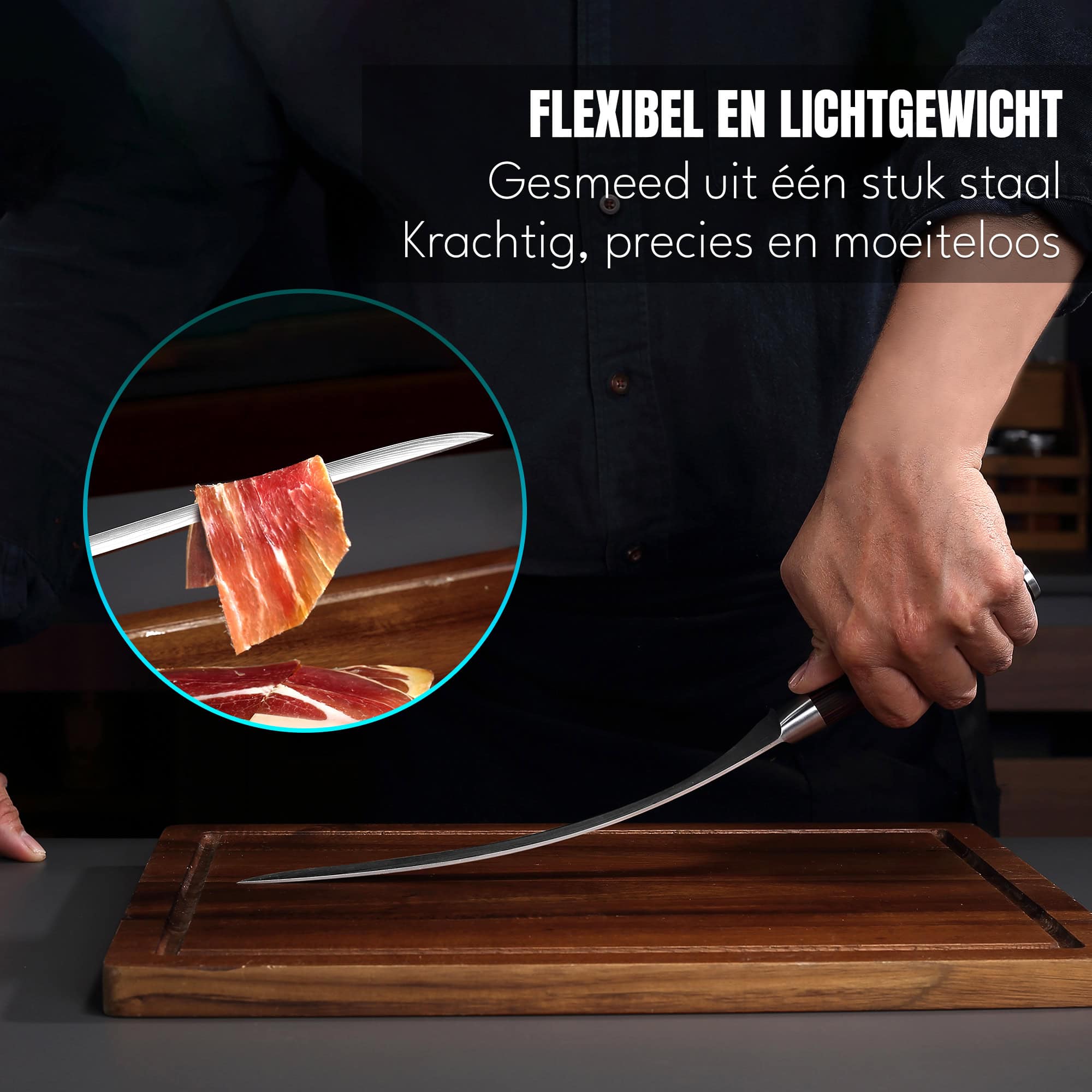 Gun jezelf de luxe van het N19 Flexibel Hammes / Fileermes, het perfecte extra lange verfijnde keukenmes dat jouw culinaire creaties naar een hoger niveau tillen.