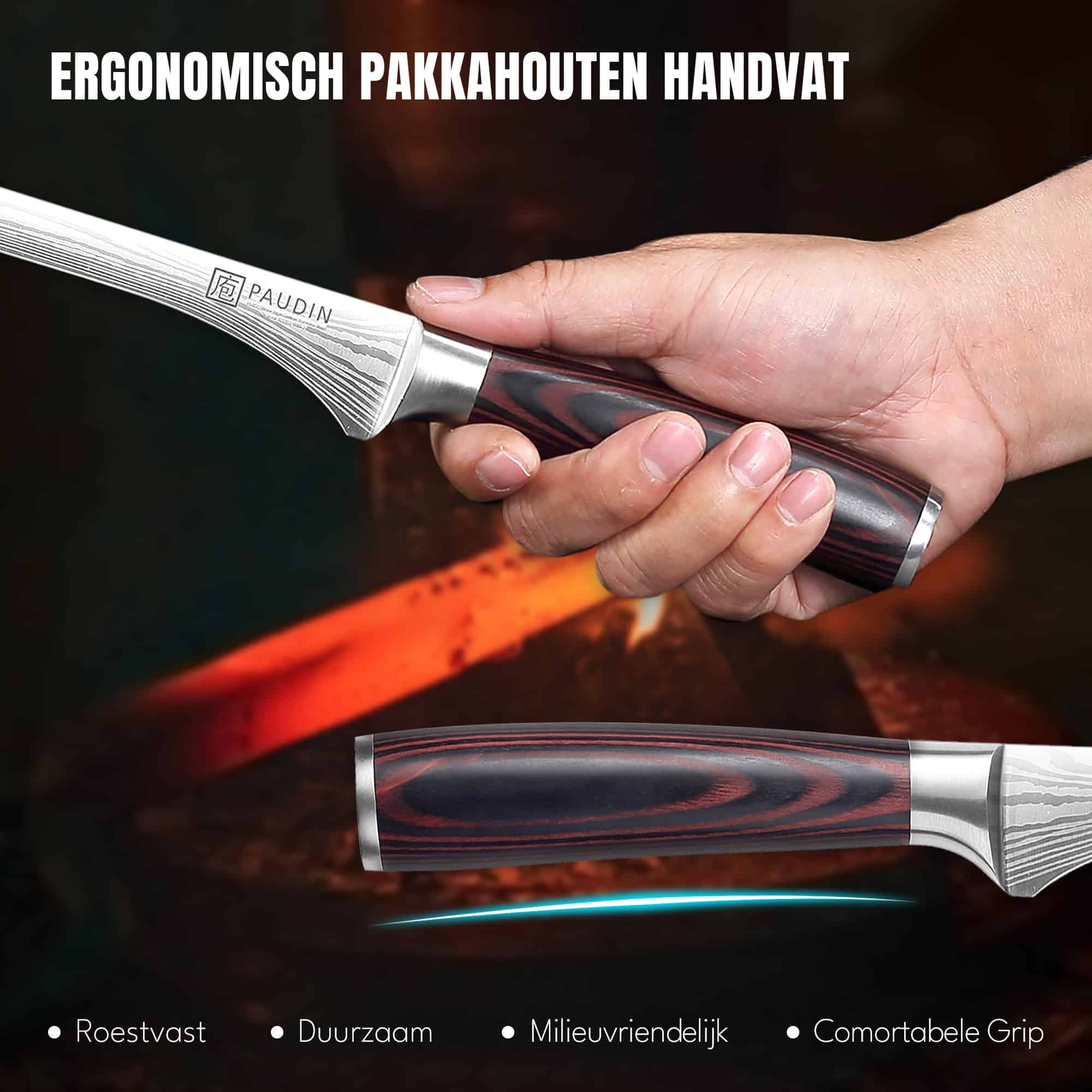 - Handvat: Ergonomisch pakkahout, antislip en slijtvast