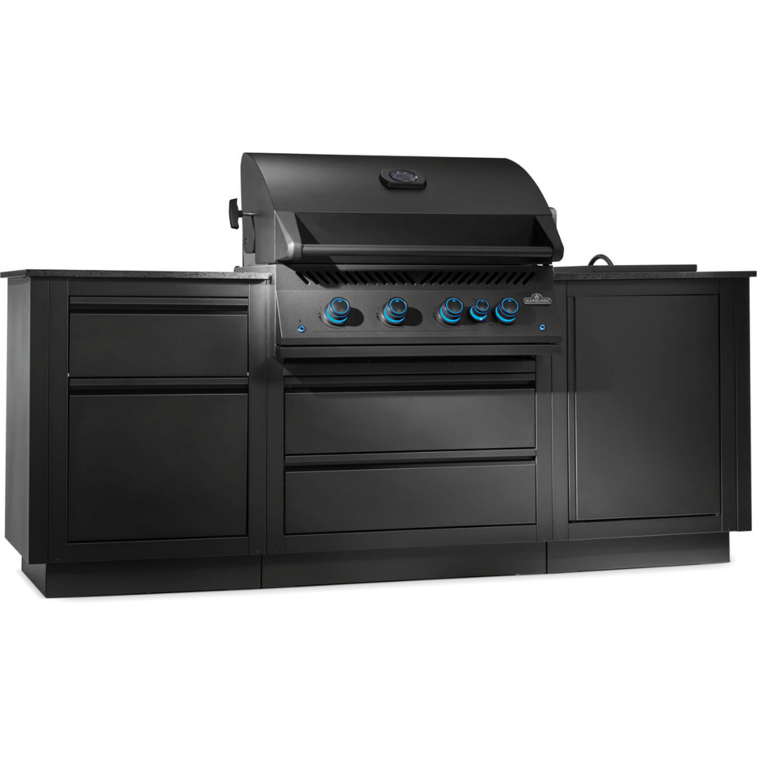 Geniet van de luxe van een buitenkeuken met de vleugelvormige OASIS™ 105 modulaire eilandkit. Deze biedt de ideale hoeveelheid opslag- en werkruimte in combinatie met de volledige 700-serie inbouwgrill op gas van 81 cm. Deze eenheid komt met een opbergkast voor een propaantank die beschikt over een uittreklade voor het gemakkelijk vervangen van de propaantank. Elke kast is gebouwd met het oog op duurzaamheid, in matzwart, gepoedercoat, gegalvaniseerd staal. Het harde werk is al gedaan en alle benodigde specificaties zijn aanwezig. De OASIS™ modulaire eilandkits zijn eenvoudig te installeren. Er zijn uitsparingen voor elektriciteits-, gas- en waterleidingen en eenvoudig verstelbare poten. Creëer de perfecte buitenkeuken met veel handige opbergmogelijkheden en een duurzame afwerking die tegen alle natuurelementen bestand is. Inclusief aanrechtblad en grillafdekkingen.