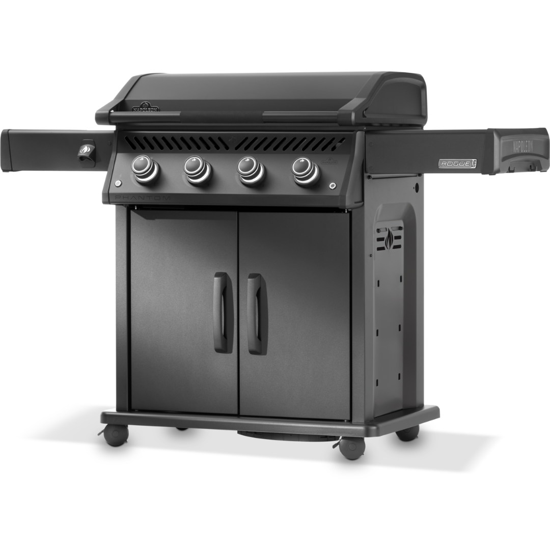 De Napoleon Phantom Rogue® PRO Plancha brengt een elegante uitstraling en culinaire veelzijdigheid naar de buitenkeuken. Met het royale grilloppervlak van roestvrij staal (70 × 44 cm) en vier krachtige branders met een vermogen tot 10,8 kW is de Phantom Plancha een volwaardige grill voor iedereen die graag creatief en smaakvol grilt – van vis en groenten tot ontbijt of dessert. Het matzwarte Phantom-design maakt de plancha-grill tot een stijlvolle blikvanger, maar ook de binnenkant is het waard om te benoemen: LED-verlichte knoppen, inklapbare zijtafels met flessenopener, een ruime vetopvanglade en soepel rollende wielen zorgen voor optimaal gebruiksgemak. Een ander slim detail is de uitneembare opbergbak in de linker zijtafel – ideaal voor voorbereiding of als multifunctionele opbergruimte. Of het nu als hoofdgrill is of als aanvulling op een bestaande set-up: de Phantom Rogue® PRO Plancha is gemaakt voor iedereen die bij het grillen waarde hecht aan kwaliteit, veelzijdigheid en design.