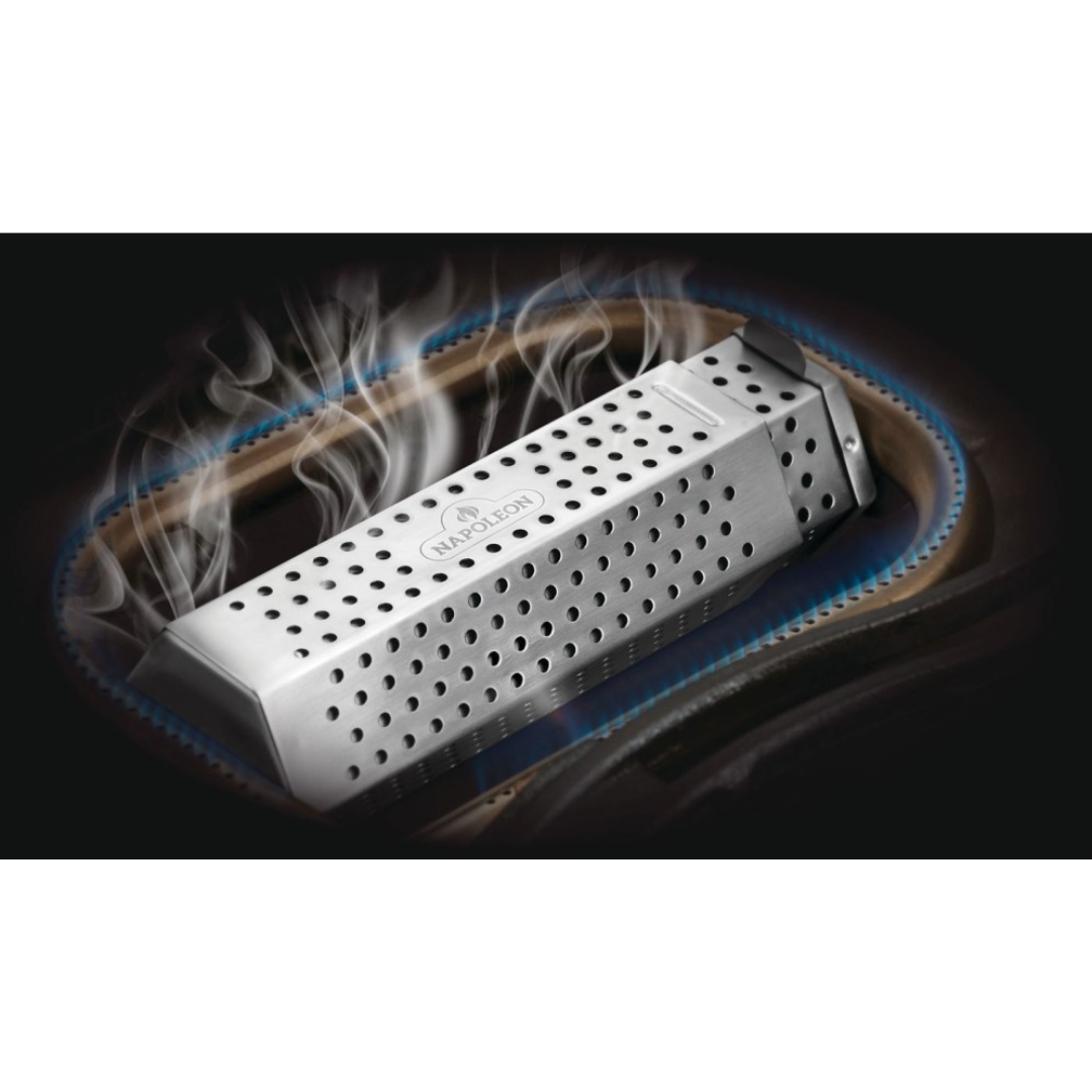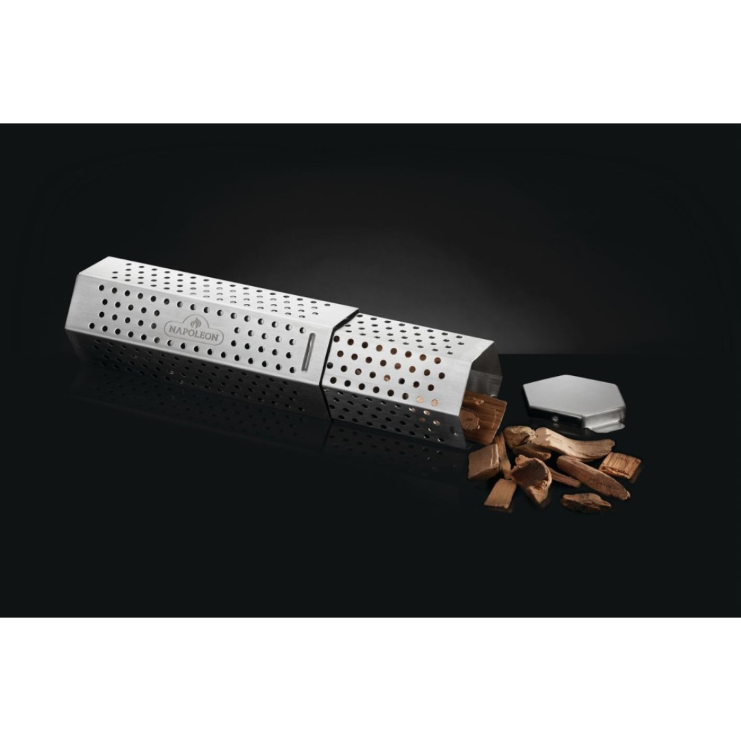 Voeg nog meer smaak aan je barbecuemaaltijden toe met de Napoleon Travel Smokerbox. Gemaakt van duurzaam RVS met een zeshoekig ontwerp past deze Smokerbox naadloos op de schroeiplaten van alle grills, zelfs strak tegen de buis van de brander van je TravelQTM.Lees meer